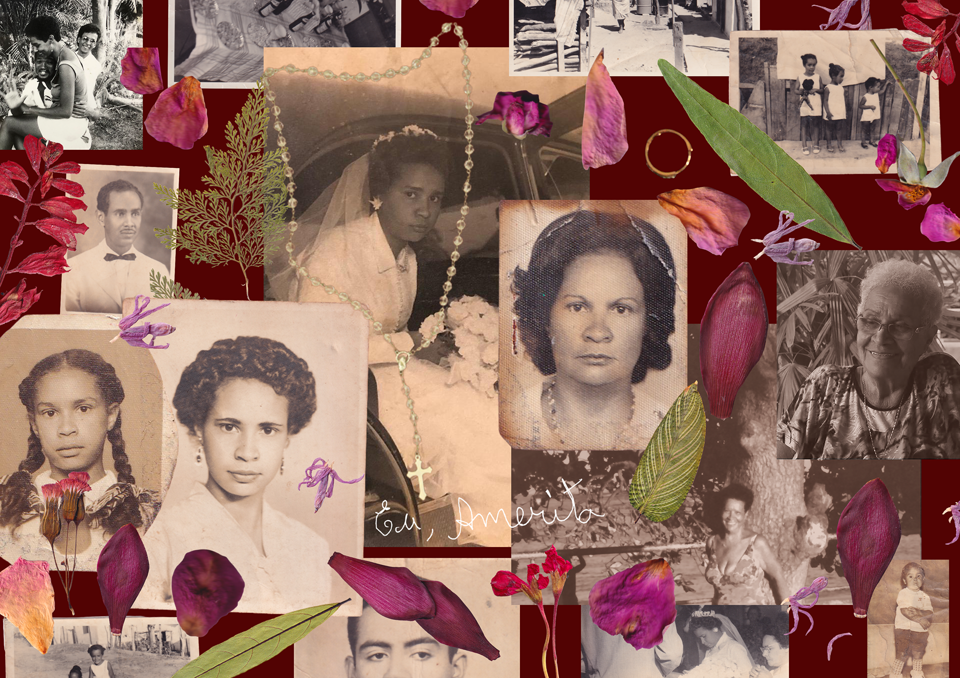 fotos pessoais, documentos antigos, convites, objetos cotidianos e memórias.