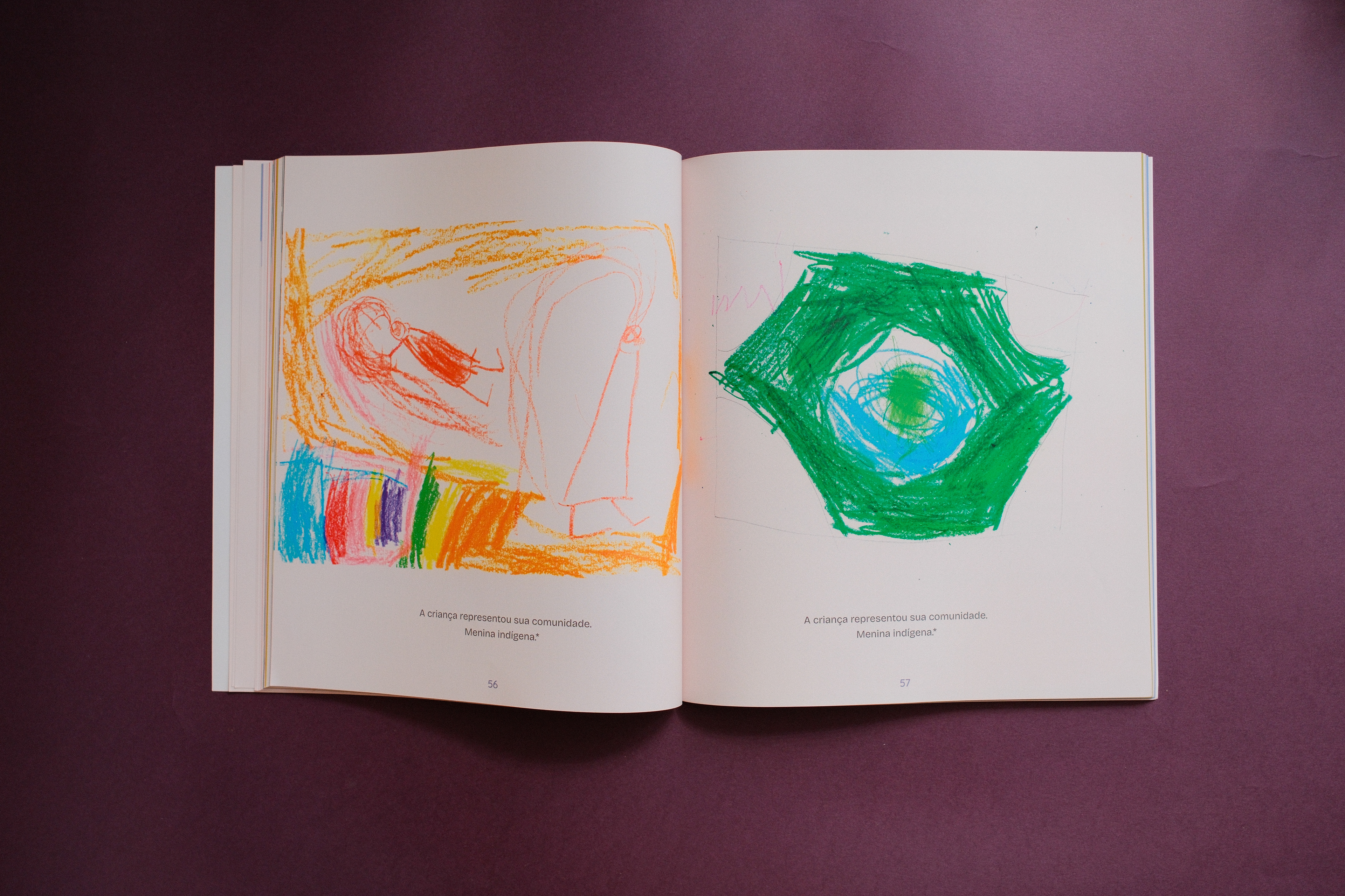 Os desenhos das crianças também foram adicionados no livro, tanto para serem  material de pesquisa e enriquecê-lo visualmente tanto para tornar as crianças ainda mais co-autoras da pesquisa.